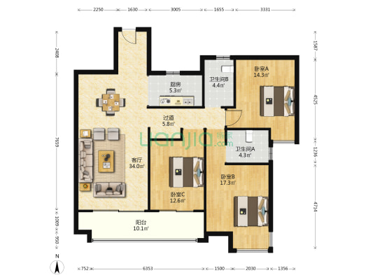 本网呈现的户型图为平台根据已拍摄的VR内容/数据绘制而成的非标准的参考户型图,其中户型结构及房屋面积并非按国家标准进行的测绘专业活动取得,我们会持续改进技术,但因为设备、技术、摄影师人为操作偏差等原因,参考户型图与真实现状一定存在差异,我们无法保障户型图准确性和差异率,户型图仅供参考,不应作为您交易的决策依据,房屋面积的准确信息请您与房源业主核实,并请以产权证明或您委托的专业机构测量结果为准。