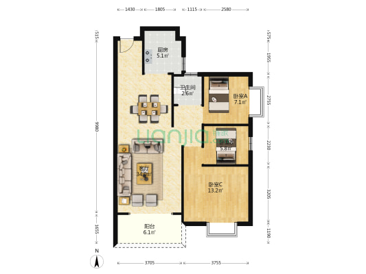 本网呈现的户型图为平台根据已拍摄的VR内容/数据绘制而成的非标准的参考户型图,其中户型结构及房屋面积并非按国家标准进行的测绘专业活动取得,我们会持续改进技术,但因为设备、技术、摄影师人为操作偏差等原因,参考户型图与真实现状一定存在差异,我们无法保障户型图准确性和差异率,户型图仅供参考,不应作为您交易的决策依据,房屋面积的准确信息请您与房源业主核实,并请以产权证明或您委托的专业机构测量结果为准。