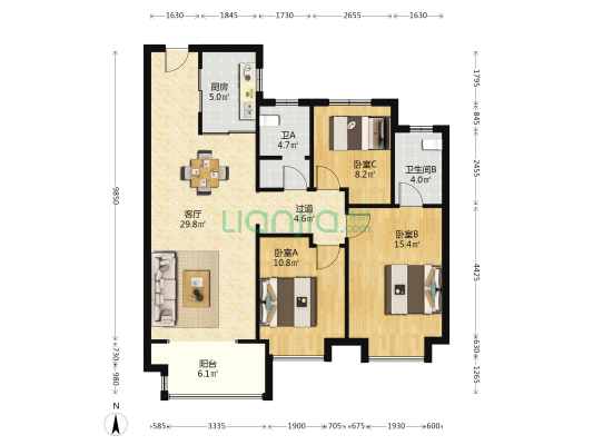 本网呈现的户型图为平台根据已拍摄的VR内容/数据绘制而成的非标准的参考户型图,其中户型结构及房屋面积并非按国家标准进行的测绘专业活动取得,我们会持续改进技术,但因为设备、技术、摄影师人为操作偏差等原因,参考户型图与真实现状一定存在差异,我们无法保障户型图准确性和差异率,户型图仅供参考,不应作为您交易的决策依据,房屋面积的准确信息请您与房源业主核实,并请以产权证明或您委托的专业机构测量结果为准。