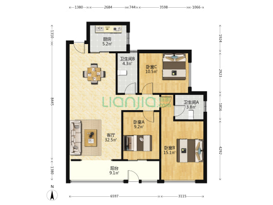 本网呈现的户型图为平台根据已拍摄的VR内容/数据绘制而成的非标准的参考户型图,其中户型结构及房屋面积并非按国家标准进行的测绘专业活动取得,我们会持续改进技术,但因为设备、技术、摄影师人为操作偏差等原因,参考户型图与真实现状一定存在差异,我们无法保障户型图准确性和差异率,户型图仅供参考,不应作为您交易的决策依据,房屋面积的准确信息请您与房源业主核实,并请以产权证明或您委托的专业机构测量结果为准。