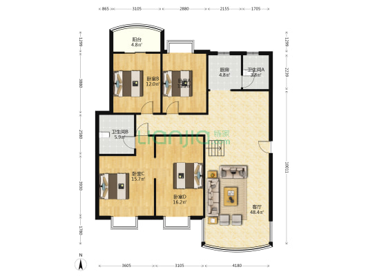本网呈现的户型图为平台根据已拍摄的VR内容/数据绘制而成的非标准的参考户型图,其中户型结构及房屋面积并非按国家标准进行的测绘专业活动取得,我们会持续改进技术,但因为设备、技术、摄影师人为操作偏差等原因,参考户型图与真实现状一定存在差异,我们无法保障户型图准确性和差异率,户型图仅供参考,不应作为您交易的决策依据,房屋面积的准确信息请您与房源业主核实,并请以产权证明或您委托的专业机构测量结果为准。