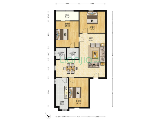本网呈现的户型图为平台根据已拍摄的VR内容/数据绘制而成的非标准的参考户型图,其中户型结构及房屋面积并非按国家标准进行的测绘专业活动取得,我们会持续改进技术,但因为设备、技术、摄影师人为操作偏差等原因,参考户型图与真实现状一定存在差异,我们无法保障户型图准确性和差异率,户型图仅供参考,不应作为您交易的决策依据,房屋面积的准确信息请您与房源业主核实,并请以产权证明或您委托的专业机构测量结果为准。