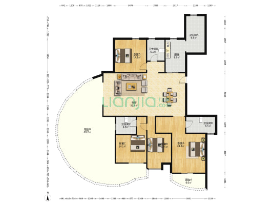 本网呈现的户型图为平台根据已拍摄的VR内容/数据绘制而成的非标准的参考户型图,其中户型结构及房屋面积并非按国家标准进行的测绘专业活动取得,我们会持续改进技术,但因为设备、技术、摄影师人为操作偏差等原因,参考户型图与真实现状一定存在差异,我们无法保障户型图准确性和差异率,户型图仅供参考,不应作为您交易的决策依据,房屋面积的准确信息请您与房源业主核实,并请以产权证明或您委托的专业机构测量结果为准。