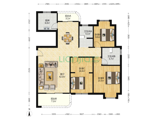 本网呈现的户型图为平台根据已拍摄的VR内容/数据绘制而成的非标准的参考户型图,其中户型结构及房屋面积并非按国家标准进行的测绘专业活动取得,我们会持续改进技术,但因为设备、技术、摄影师人为操作偏差等原因,参考户型图与真实现状一定存在差异,我们无法保障户型图准确性和差异率,户型图仅供参考,不应作为您交易的决策依据,房屋面积的准确信息请您与房源业主核实,并请以产权证明或您委托的专业机构测量结果为准。