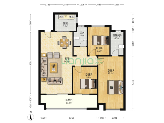 本网呈现的户型图为平台根据已拍摄的VR内容/数据绘制而成的非标准的参考户型图,其中户型结构及房屋面积并非按国家标准进行的测绘专业活动取得,我们会持续改进技术,但因为设备、技术、摄影师人为操作偏差等原因,参考户型图与真实现状一定存在差异,我们无法保障户型图准确性和差异率,户型图仅供参考,不应作为您交易的决策依据,房屋面积的准确信息请您与房源业主核实,并请以产权证明或您委托的专业机构测量结果为准。