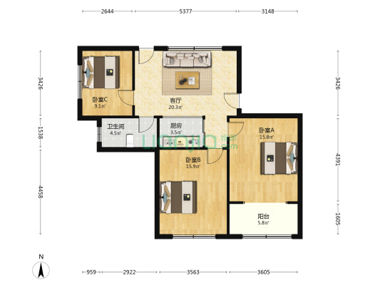 以上户型图为房源参考图,其中户型结构及面积并非按国家专业测绘活动所得,与真实现状及产权证明呈现的面积存在差异,仅供参考,请以产权证明或专业机构测量结果为准。
