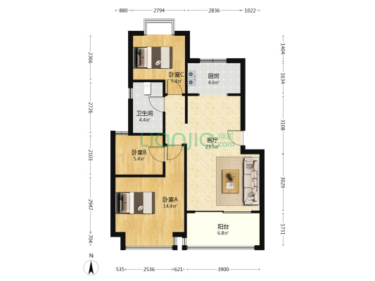 本网呈现的户型图为平台根据已拍摄的VR内容/数据绘制而成的非标准的参考户型图,其中户型结构及房屋面积并非按国家标准进行的测绘专业活动取得,我们会持续改进技术,但因为设备、技术、摄影师人为操作偏差等原因,参考户型图与真实现状一定存在差异,我们无法保障户型图准确性和差异率,户型图仅供参考,不应作为您交易的决策依据,房屋面积的准确信息请您与房源业主核实,并请以产权证明或您委托的专业机构测量结果为准。
